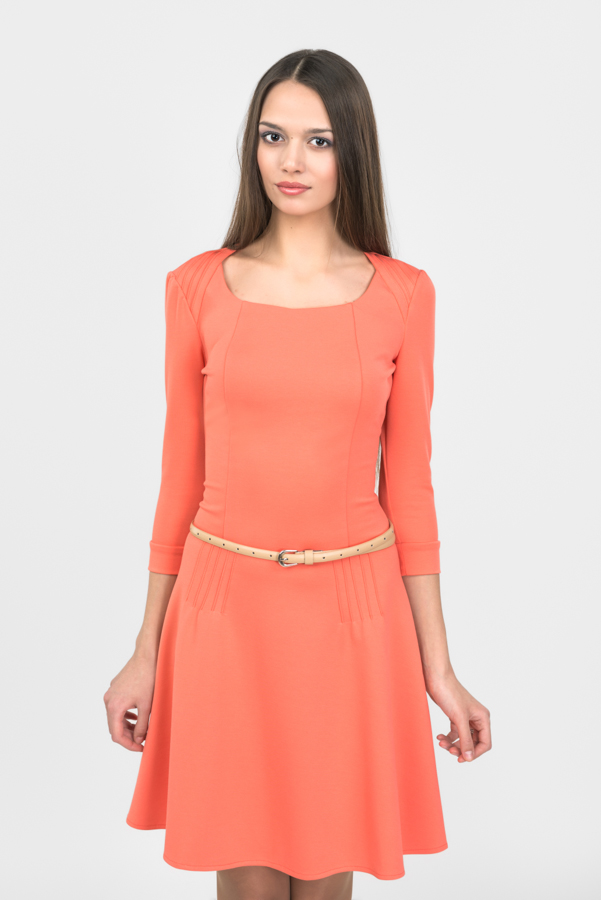 Яркое платье для ярких девушек! Платье из трикотажа сочных весенних цветов идеально подходит для солнечного времени года. Приталенный крой с широкой расклешенной юбкой обеспечивает хорошую посадку по любой фигуре.