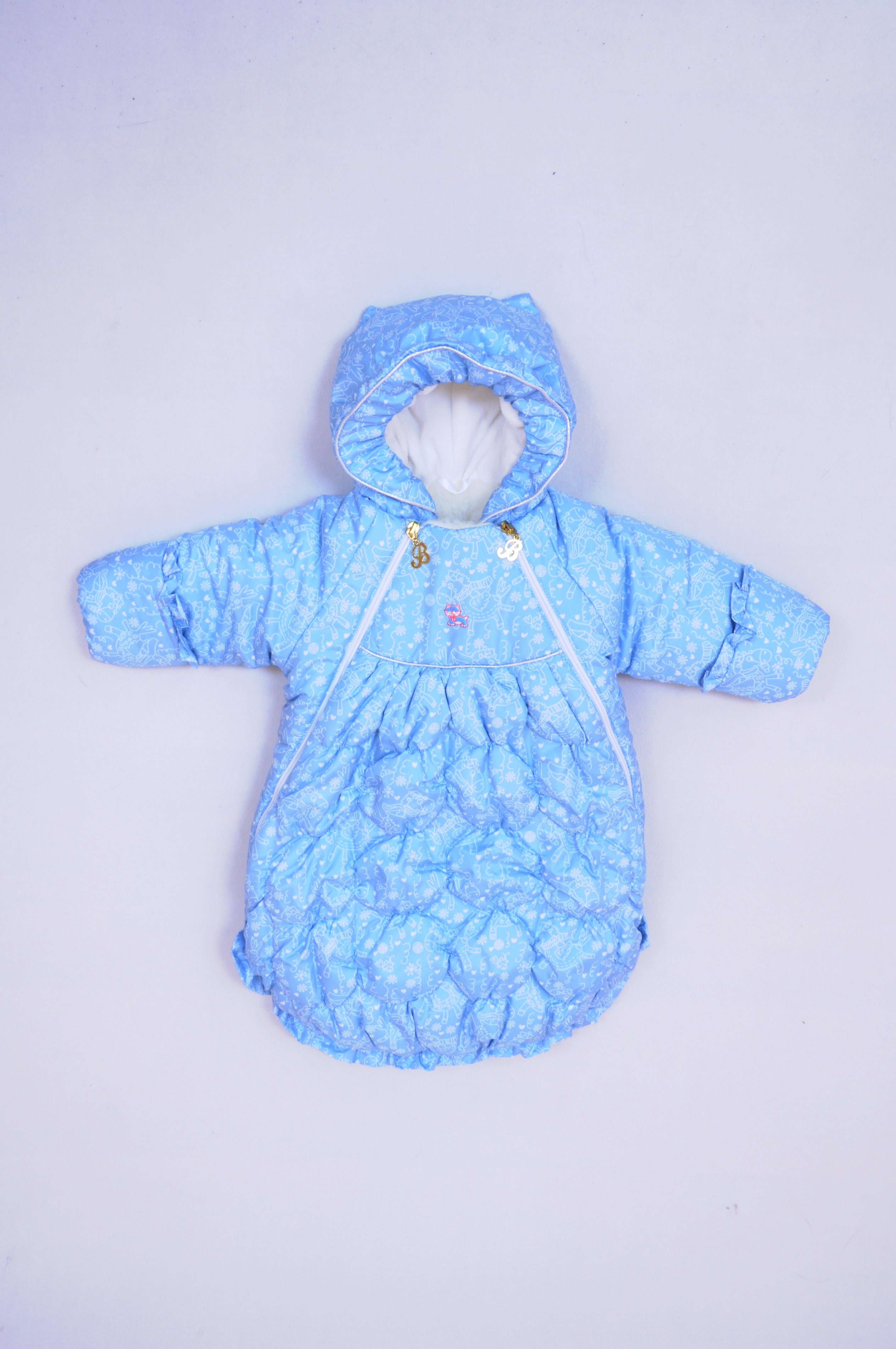 Теплый и очень нарядный конверт,прекрасно подойдет на выписку из роддома.Размер единый-от 0-6 месяцев