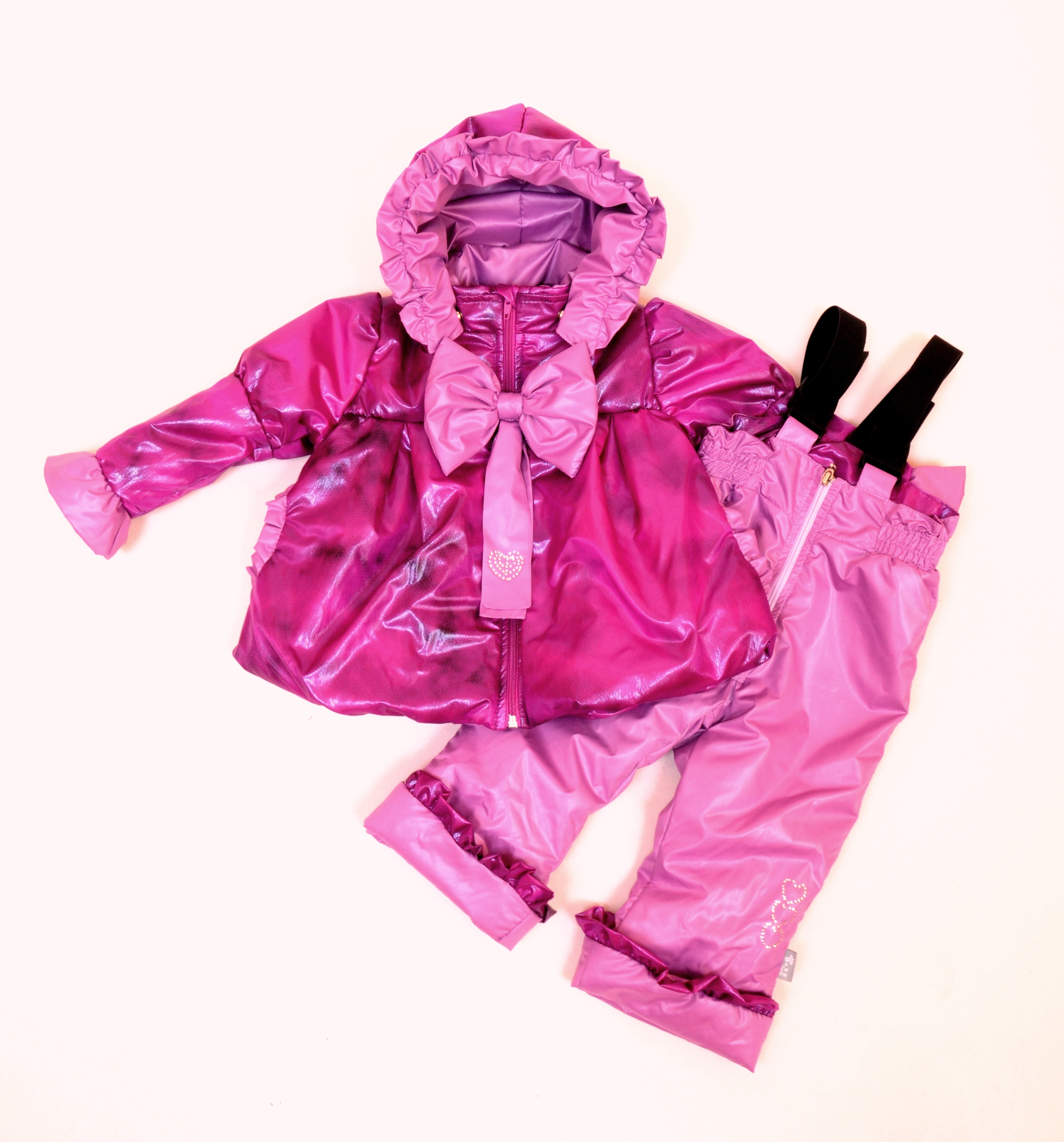 Ткань верха: 100% ПА, с водооталкивающей пропиткой. Утпелитель: холлофан 150 гр в куртке, 100гр в полукомбинезоне. Подкладка: нейлон 100 %.