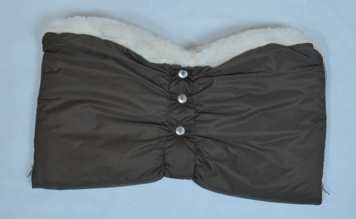 По бокам застегиваются на молнии,который одеваются на любую ручку коляски,или санок.По центру кнопки,чтобы вашим рукам было комфортно. это Супер Тюнинг для коляски!